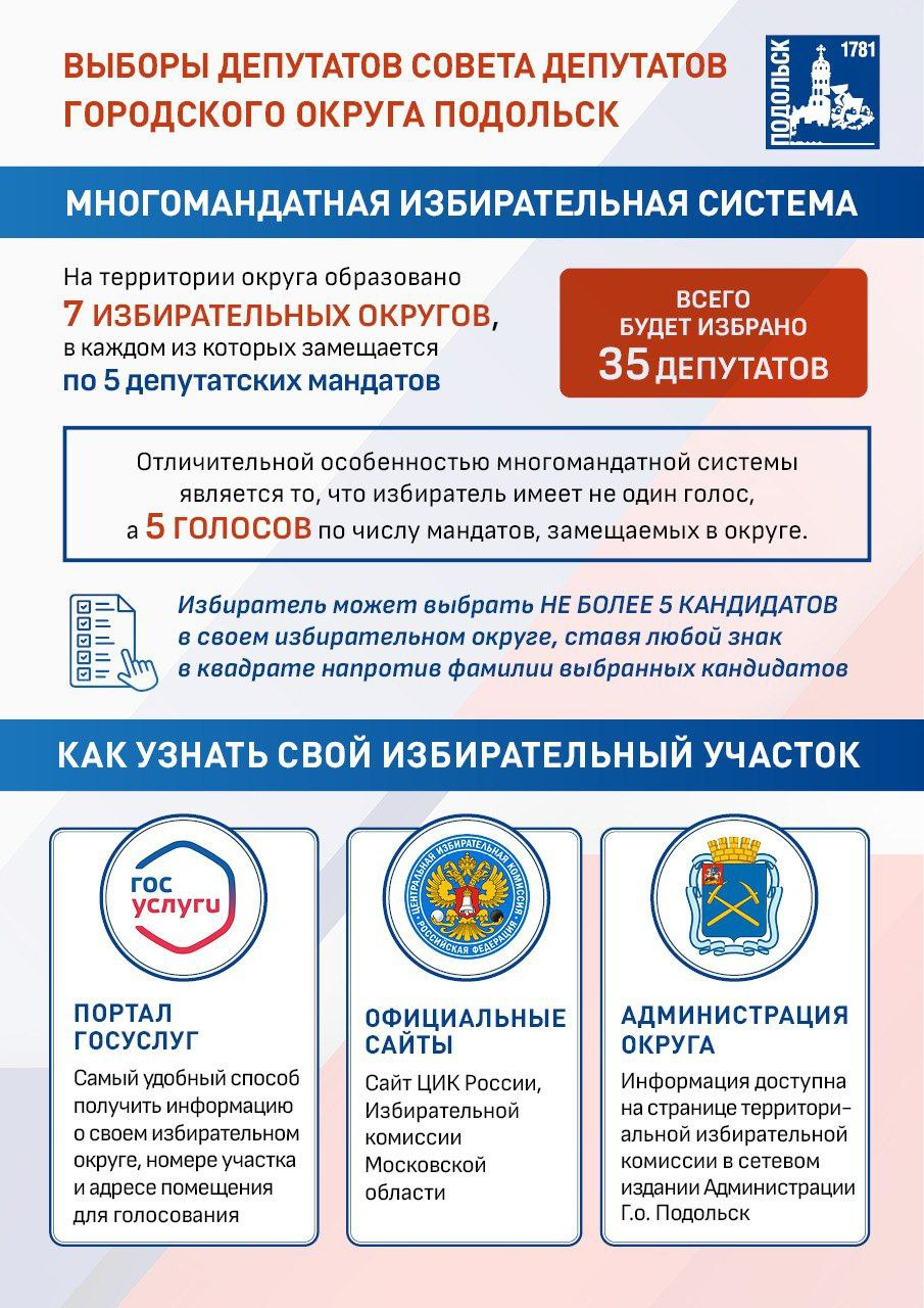 Все избирательные участки подготовлены и будут работать с 08:00 до 20:00. Адрес своего можно уточнить на «Госуслугах», сайтах ЦИК России и Мособлизбиркома, а также на странице ТИК Подольска.